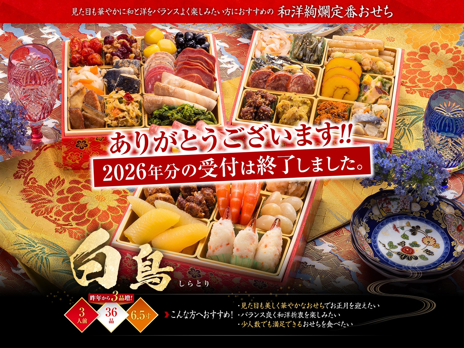 おせちは生ものです。日持ちのしない食材を含め、様々な具材がありますので開封後はできるだけ早めにお召し上がりください。